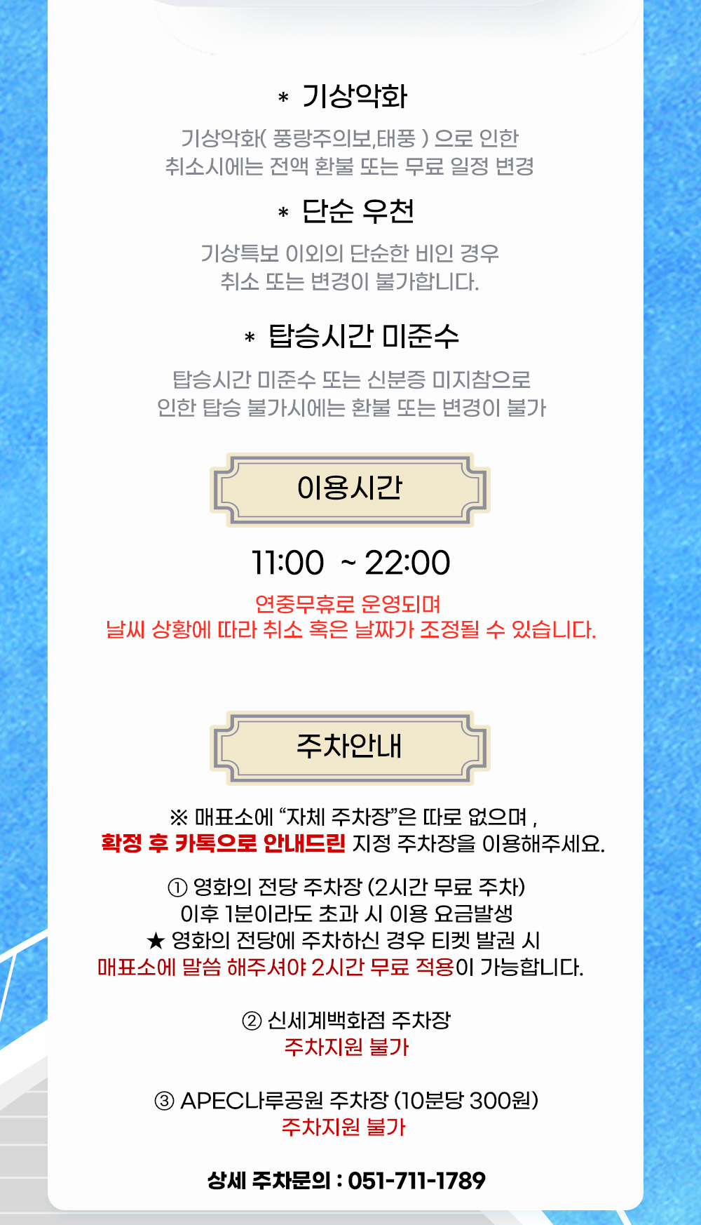 단, 단순 우천 시에는 취소 또는 변경이 불가합니다.